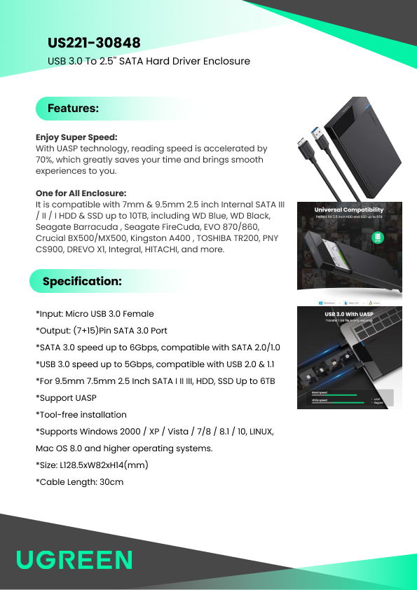 US221 CAJA DISCO DURO 2.5 PULGADAS USB 3.0 FEMALE