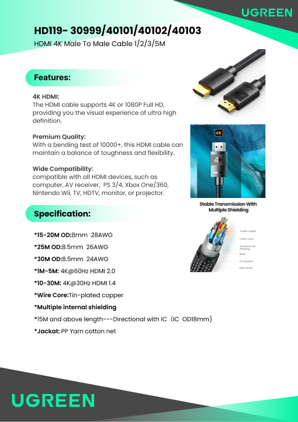 HD119 CABLE HDMI 4K MACHO A MACHO TRENZADO 2M
